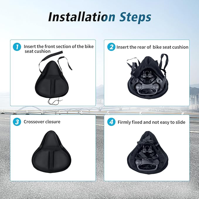 - [Stationary Bike Seat Cushion]:HUIOK bike seat cushion is filled with gel+high resilience memory sponge, which has excellent elasticity and durability. Stationary bike seat cushion can not only provide comfortable sitting feeling, but also effectively relieve fatigue and discomfort caused by long sitting posture