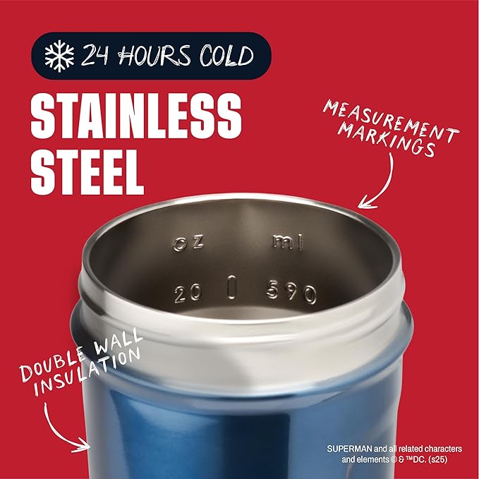 BlenderBottle Superman Strada Shaker Cup Insulated Stainless Steel Water Bottle with Wire Whisk, 24-Ounce, Man of Steel - Blue