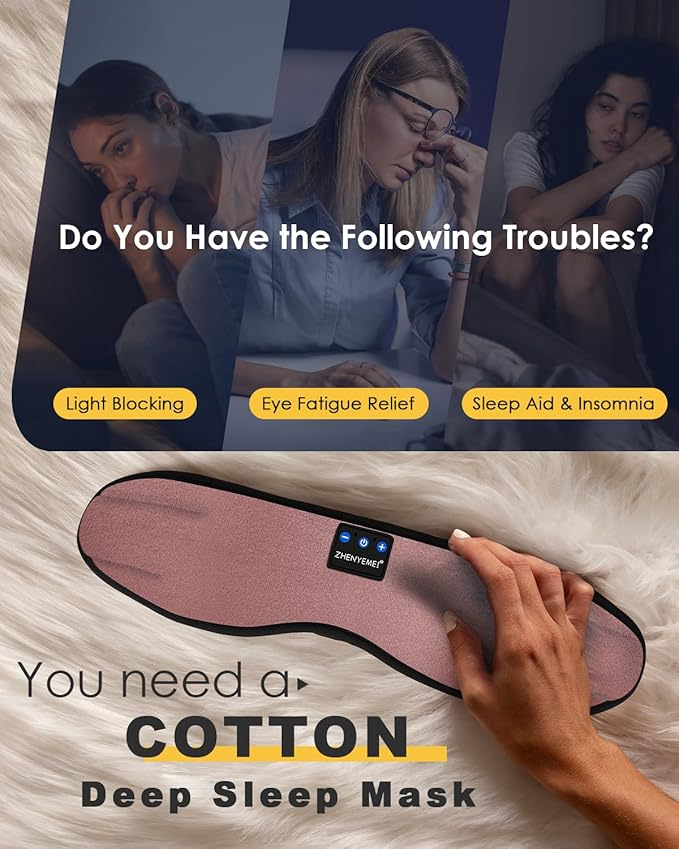 Bluetooth Sleep Mask Headphones 3D Deep Eye Mask with Headphones,Can Play 14 Hours Breathable 100% Blackout Sleeping Mask for Travel/Nap,Sleep Aids with Travel Bag Tech Gadgets for Men Women