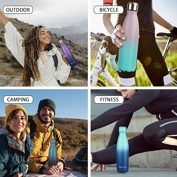 - COLORFUL & UNIQUE:Powder coating is the pinnacle of water bottle exteriors. Choose from a range of vibrant colors to match your personality and style. The Stainless Steel Metal water bottle is crafted with fashionable color powder coating, will not be scattered, discolored and difficult to scratch. Available in 9, 12,and 17-ounce sizes,making it easy to find the perfect size for your needs.