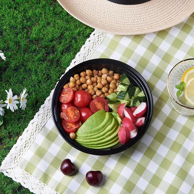 - MEAL-PREP MADE EASY: Black Salad bowls Deli Food Storage Containers with Clear Airtight Lids Leak Resistant, stack neatly, and feature a microwaveable bottom to make meal planning a breeze