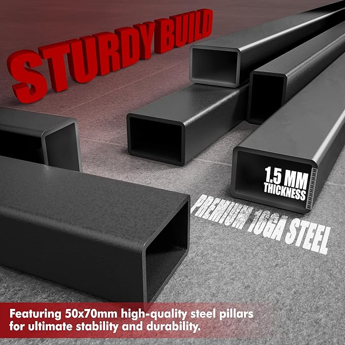 - Sturdy and Stylish Construction: Crafted from industrial-grade 50*70mm steel with 1.5mm thickness, this adjustable weight bench’s structural integrity is unmatched. Featuring a beautifully welded frame, it combines durability with a sleek, modern look.