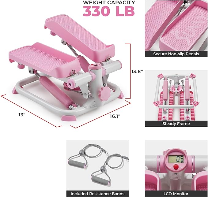 - 【COMPACT & EASY SETUP/PINK DESIGN】90% pre-assembled, this stepper is quick to set up. Its compact, space-saving design is perfect for small spaces and now features a vibrant pink color option.