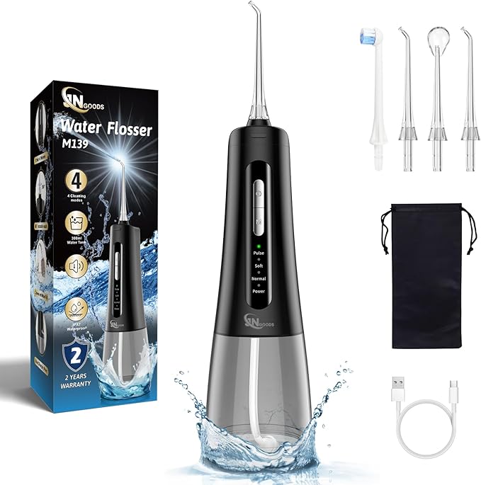 - 4 Clean Modes: JNGOODS cordless oral flossers teeth cleaner has Normal, Soft, Pulse and Power modes for choosing with Low-noise below 60db, which can meet various oral needs.