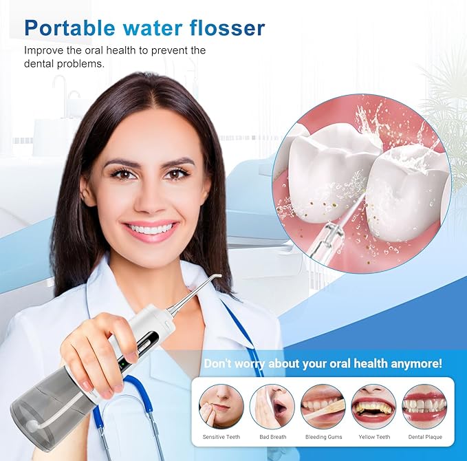 - JNGOODS Flossers Kit & The water pump adopts piston pump technology and has high pressure : The electric water dental picks teeth cleaning kit with handheld features an ergonomic design and upgraded pulsation technique, with mouthwash whitening pressure water pulse 1600-1800 times/min, 30-120PSI strong water pressure to effectively removes all the trapped food stuck that traditional brushing and flossing can't reach, benefitful for brace and bridge personal toothbrushes denture bath care