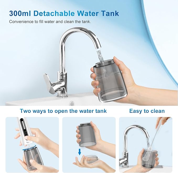 - 4 Clean Modes: JNGOODS cordless oral flossers teeth cleaner has Normal, Soft, Pulse and Power modes for choosing with Low-noise below 60db, which can meet various oral needs.