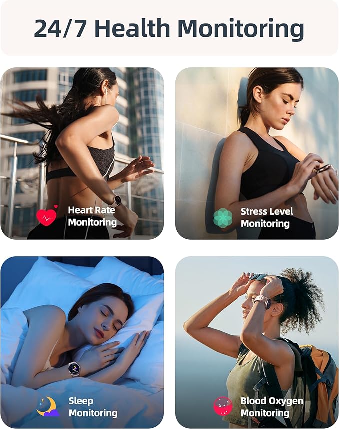 - 【COMPREHENSIVE 24/7 HEALTH MONITORING】Experience the future of health tracking with our smart watch for men and women, featuring high-precision sensors for exceptional accuracy. Effortlessly monitor your heart rate, blood oxygen levels, and sleep quality while enjoying one-touch health assessments, dedicated breathing exercises for relaxation, and personalized hydration and activity reminders. Take control of your wellness today with cutting-edge technology, with compliance to GDPR and CCPA regulations for secure and reliable health monitoring.