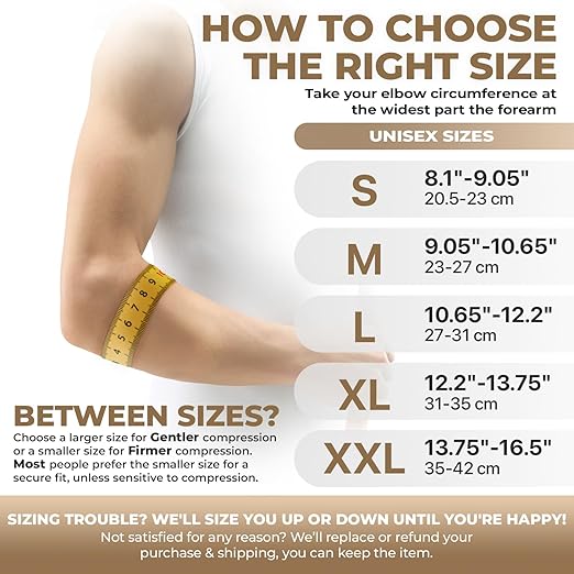 - INCREDIBLE CONSTRUCTION: Our elbow brace is designed to offer superior support, comfort, and relief without compromising your mobility. It features a tight, non-slip, form-fitting, and breathable compression fabric that maintains joint stability without the itchiness of neoprene Elbow supports.