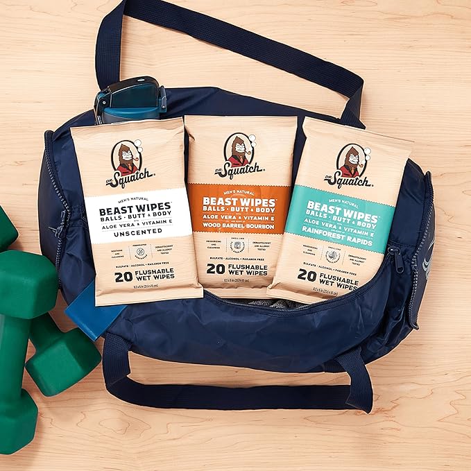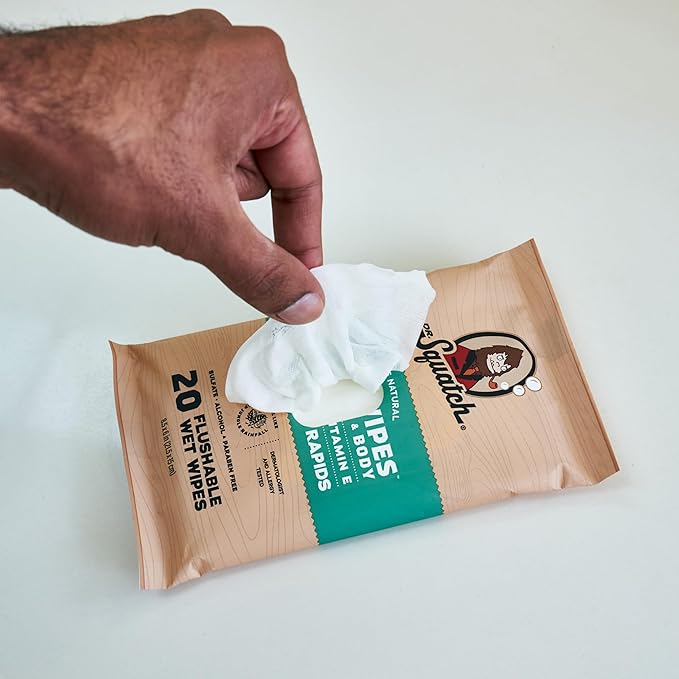 - CRAFTED - with aerobic biodegradable nonwoven fibers, our flushable wipes are made with natural ingredients like Aloe Vera and Vitamin E to soothe and refresh. This 2-Pack of Dr. Squatch Rainforest Rapids Beast Wipes will help you stay clean.