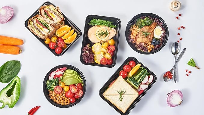 - MULTIFUNCTIONAL MEAL PREP & TO GO CONTAINERS: Perfect for: packed lunches, take out and delivery and portion control. Prep hot or cold meals: salad, sandwich, snack, fresh fruit, dip, breakfast, lunch, dinner, leftovers, and meals. our box with durable design has a high tolerance for bending, twisting and temperature, plus our airtight, leak-proof lids seal tight, keeping your food safe and secure