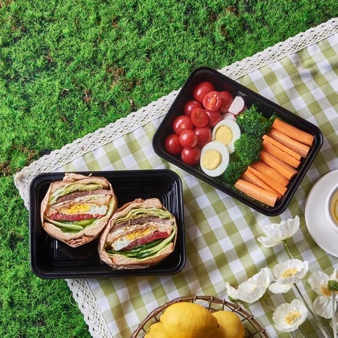150 Pack Meal Prep Plastic Food Storage Containers With Lids 28 oz 1 Compartment Black Rectangular To Go Lunch Prepping Boxes BPA-Free Microwavable Freezer Safe Stackable (Formerly FULING)