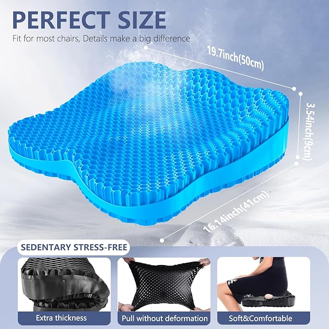 - 20% EXTRA LARGER & THICKER: The upgraded thickness is: 3.54inch(9cm), which is much thicker than the other kayak gel seat cushion pad, can disperse more pressure and relieve more soreness when in kayaking or fishing. Exclusively designed to provide more comfort and support for those who suffer from tailbone, back, and hip pain for long hours sitting.