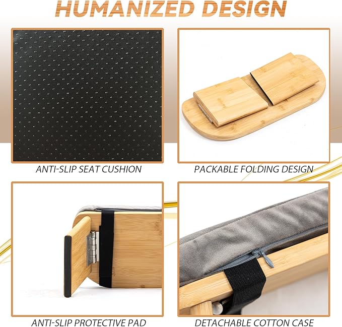- High-quality Material:This folding meditation bench is made of high-quality material with a durable, machine-washable anti-slip cotton case for extra protection. Folding meditation bench is constructed with durability and strength, which has a maximum load-bearing capacity of 260 lbs. Use with or without cushion based on what fits you best