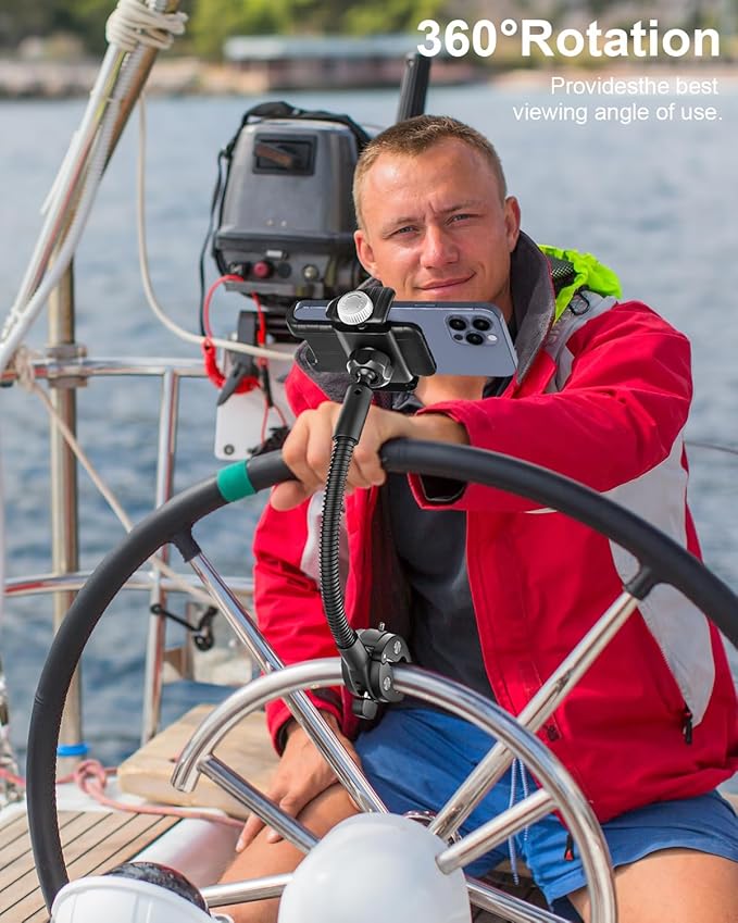 Gooseneck Phone Holder for Wheelchair, Stroller, Golf Cart, Boat, Mic Stand, Indoor Cycling Bike, Gym Bicycle Handlebar Clamp, Compatible with iPhone 16 Pro Max/15/14/13/12, Android and All Smartphone