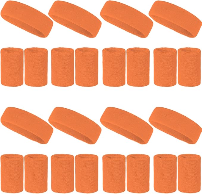 - Sweatbands Set Bulk: You will receive 8 pieces of orange headbands,16 pieces of orange wristbands, enough to meet your daily use and dressing demands, come in neon solid colors and striped style, very stylish for a good look
