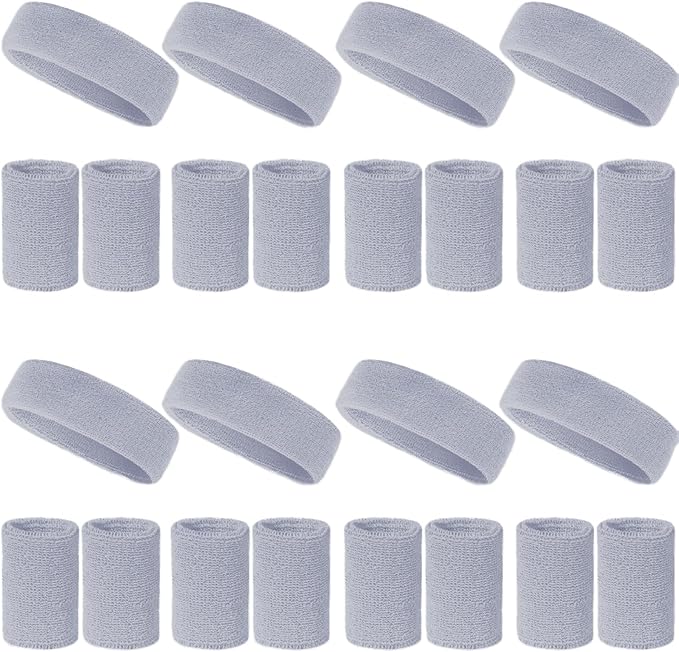 - Sweatbands Set Bulk: You will receive 8 pieces of grey headbands,16 pieces of grey wristbands, enough to meet your daily use and dressing demands, come in neon solid colors and striped style, very stylish for a good look