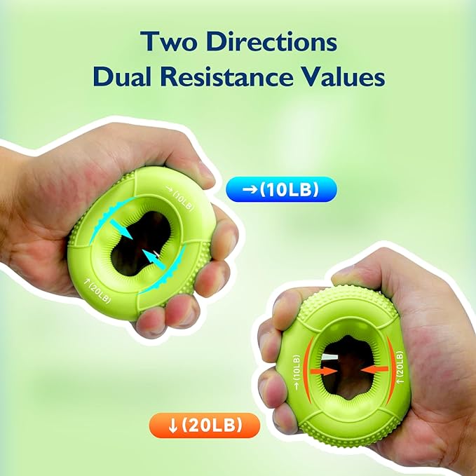- ๐๐ผ๐ป๐ด-๐น๐ฎ๐๐๐ถ๐ป๐ด & ๐๐น๐ฒ๐ ๐ถ๐ฏ๐น๐ฒ ๐๐ฟ๐ถ๐ฝ ๐ฅ๐ถ๐ป๐ด๐: Advance your hand strength with our progressive hand gripper rings, offering adjustable resistance from a gentle 10-20LB to a tough 50-60LB. Each ring is made from premium food-grade silicone, ensuring lasting elasticity and shape retention. The non-slip textured surface provides a secure and comfortable grip.