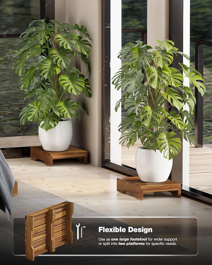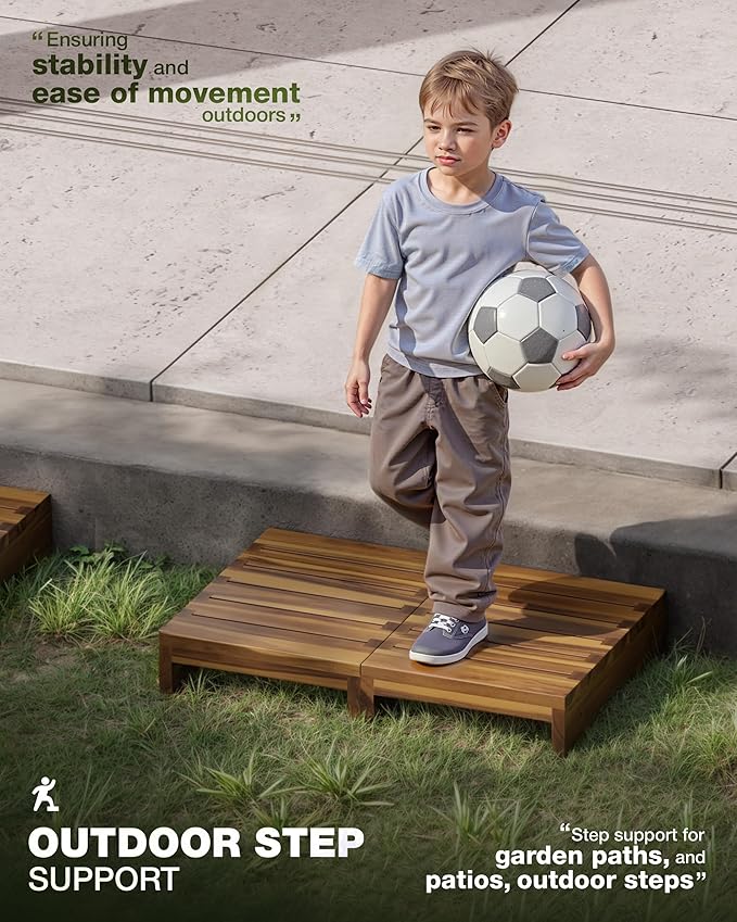 - 🌳 Strength of Natural Acacia Wood: Crafted from premium Acacia wood, this step stool is not only water-resistant but also scratch-resistant, ensuring durability and longevity. The slatted surface enhances airflow and drainage, preventing moisture accumulation, making it suitable for both indoor and outdoor use.