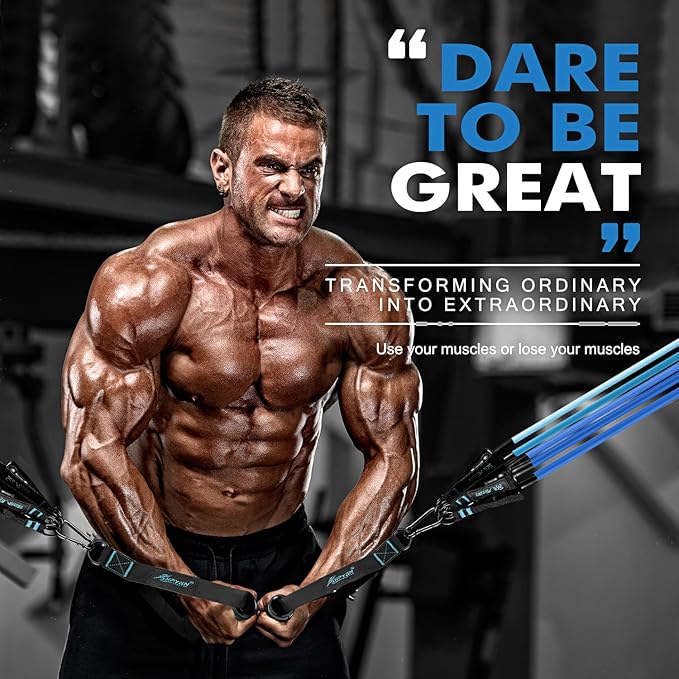- 【perfect Workout Equipment】The resistance bands come with 5 different resistance level 10lbs, 20lbs, 30lbs, 40lbs and 50lbs in 5 different colors. You can use the bands independently or in any combination with a maximum resistance level of 150lbs.Whether you're just starting out fitness or working out professionally, they're the perfect home workout equipment.
