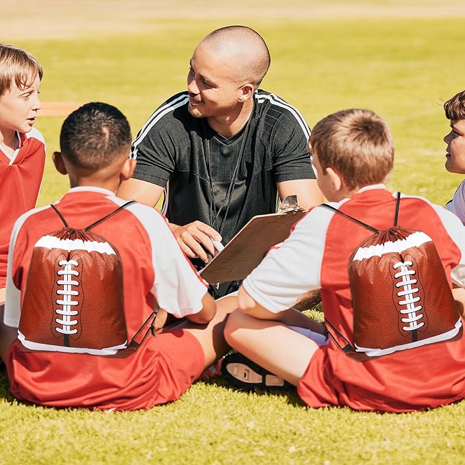 durony 15 Pieces Football Drawstring Gift Bags Bulk Candy Bag 15.8 x 13.4 Inch Football Goodie Backpack Sports Party Favor Supplies for Gym Travel Party Storage