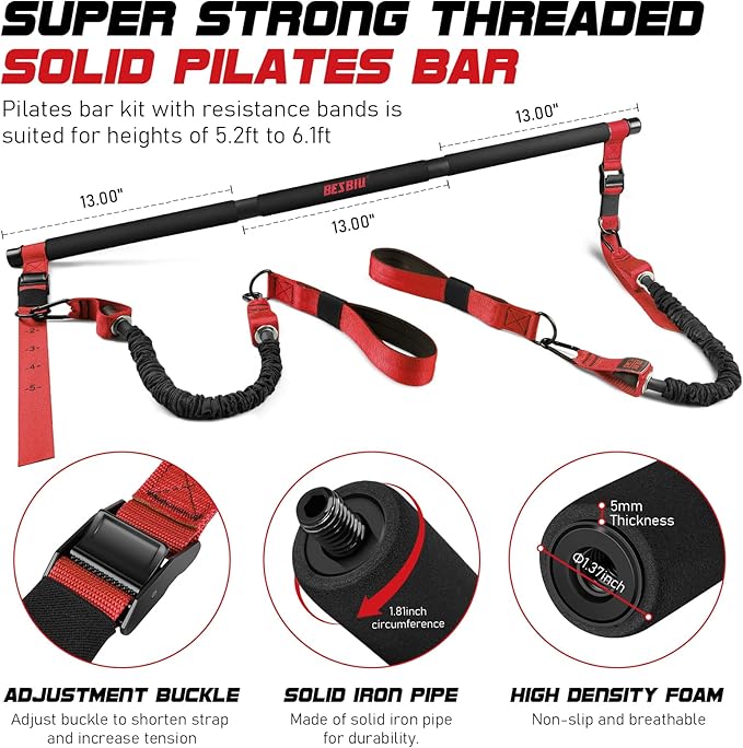 - Included Components : Anti-slip soft pad handles, Soft SBR material padded foot straps, Thicked door anchor, Adjustable padded ankle straps, Pilates bar workout poster, Warning card, Carry bag, Gift box Anti-slip soft pad handles, Soft SBR material padded foot straps, Thicked door anchor, Adjustable padded ankle straps, Pilates bar wor… See more