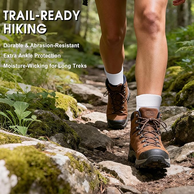 - Trail-Ready Durability : Built to conquer rugged terrain, these socks are ideal for hiking adventures, mountain trails, and extended camping trips. Crafted with durable, abrasion-resistant materials, they feature an enhanced heel tab to minimize wear and tear and mesh pores for optimal breathability. Designed for outdoor explorers and nature enthusiasts who demand both comfort and protection.
