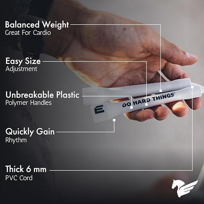 - Fitness Jump Rope: This durable Elite jump rope features a thick 6mm PVC cord with an inner string cord that can be used both indoors on smooth surfaces and outside on rough ones. This classic jump rope great for cardio.