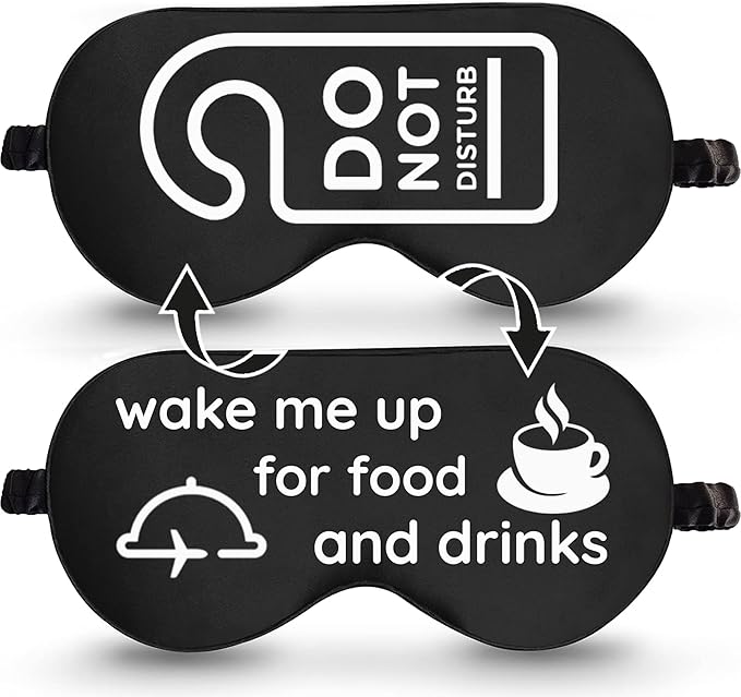 VITYA Black Do Not Disturb/Wake Me Up Double-Sided Silk Sleep Mask for Women/Men | Sleep Mask Light Blocking | Soft Breathable Sleep Eye Mask for Traveling on Airplane | Eye Mask with Elastic Strap
