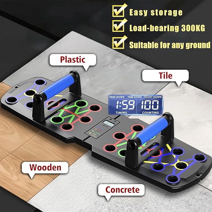 - 【Unique Intelligent Counting and Timing Function】The new generation push-up bar has an intelligent counting and timing function, including three mode options: FREE DOWN, TIME DOWN and COUNT DOWN. It tracks your movements in real time, allows precise control of your exercise intensity, so that you can fully devote yourself to exercise and don't have to worry about counting errors. It is a good helper for you to do push-ups.