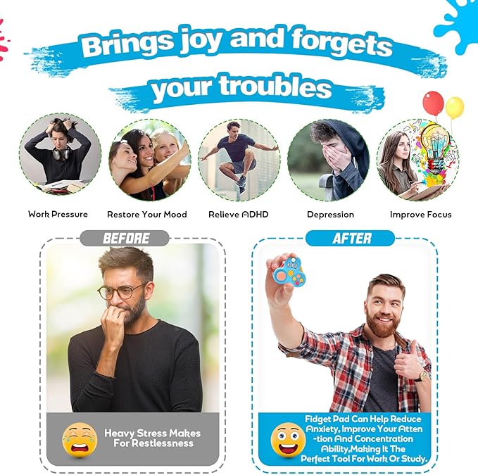 • Perfect gift for fidget lovers:If you're looking for a thoughtful and practical gift,our fidget pads are an excellent choice.Ideal for birthdays, easter gift for teen boys adults or any occasion,these fidget pads make for great sensory toys