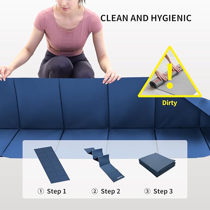 - 【Layered Inside and Outside to Keep Out Dirt】The part of the mat that touches the floor when folded for storage does not come into contact with the front of the mat, isolating it from dirt. When traditional mats are rolled up for storage, the bottom of the mat will directly cover the front of the mat, bringing dirt from the floor to the surface of the mat.