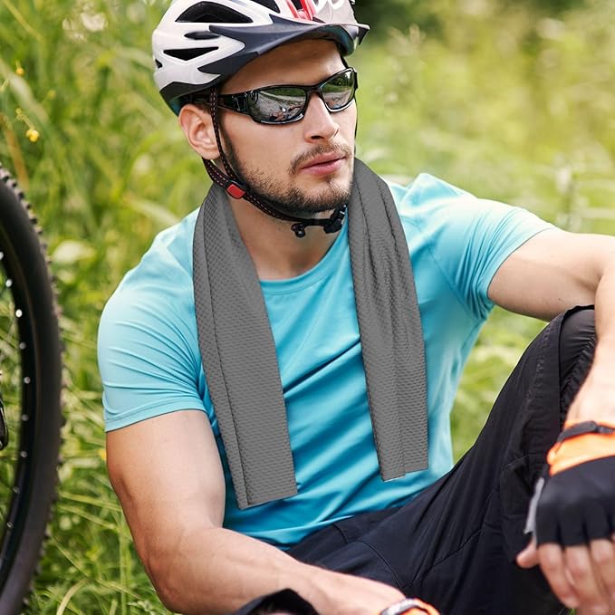 - MULTIPURPOSE: You can wear the cooling Towel as a headscarf, you can also hang it around your neck, you can also tie it to your hand used to wipe sweat. Keeps you cool during the summer heat, sporting activities and are perfect cooling towels for athletes, runners, cooks, landscapers, etc. Used as cooling towels for neck, wrist, sweat towel for the gym and head wrap.
