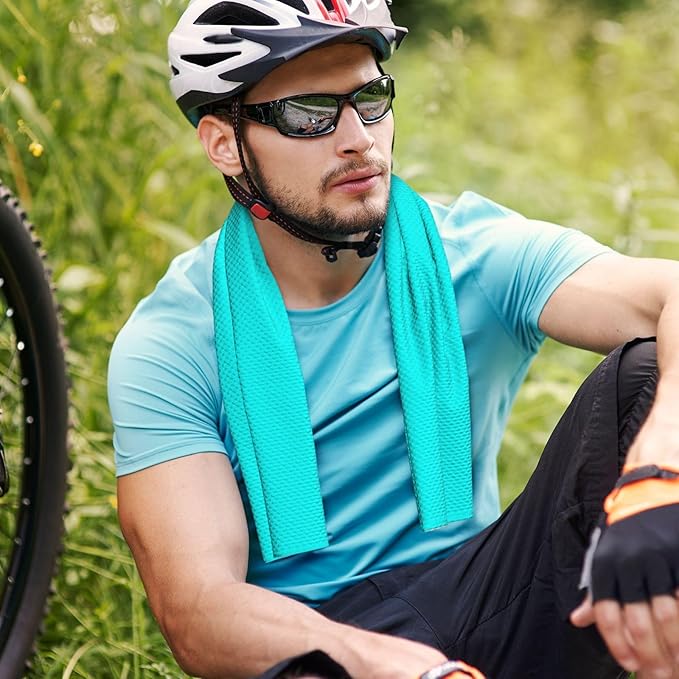 - MULTIPURPOSE: You can wear the cooling Towel as a headscarf, you can also hang it around your neck, you can also tie it to your hand used to wipe sweat. Keeps you cool during the summer heat, sporting activities and are perfect cooling towels for athletes, runners, cooks, landscapers, etc. Used as cooling towels for neck, wrist, sweat towel for the gym and head wrap.
