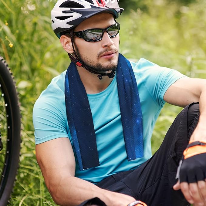 - MULTIPURPOSE: You can wear the cooling Towel as a headscarf, you can also hang it around your neck, you can also tie it to your hand used to wipe sweat. Keeps you cool during the summer heat, sporting activities and are perfect cooling towels for athletes, runners, cooks, landscapers, etc. Used as cooling towels for neck, wrist, sweat towel for the gym and head wrap.