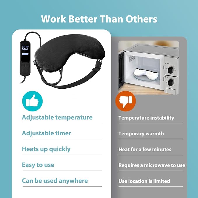 - Relieve Eye Discomfort: Our heated eye mask uses far infrared technology to quickly and effectively relieve dry eyes, eye fatigue, sinus migraines, dark circles, blepharitis, styes, puffiness, and MGD, providing ultra comfy hot therapy for your eyes. A great choice for a Father's Day gift.