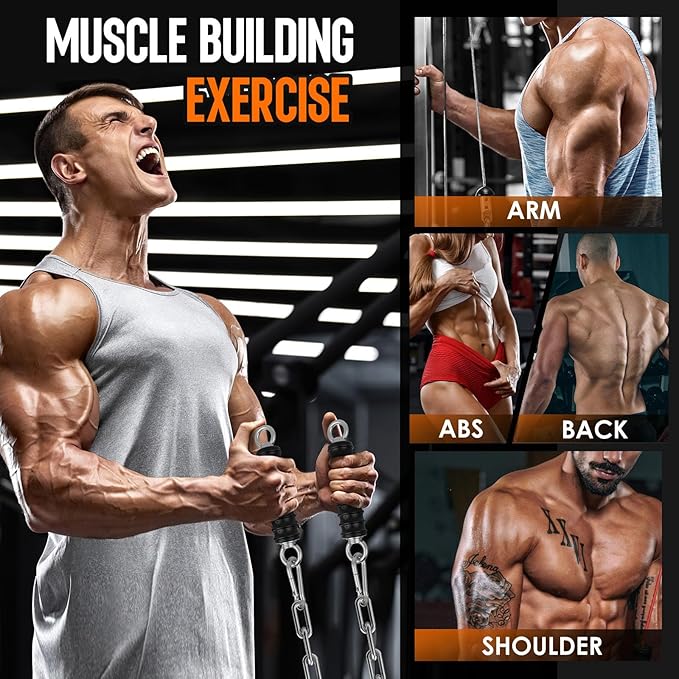- Muscle Exercise: This gym cable pull down rope attachment can effectively work out to arm muscle groups such as triceps, biceps, deltoids, etc., also can have precise stimulation to back muscle groups such as latissimus dorsi, large round muscles, etc., it's a handy assistant for fitness enthusiasts