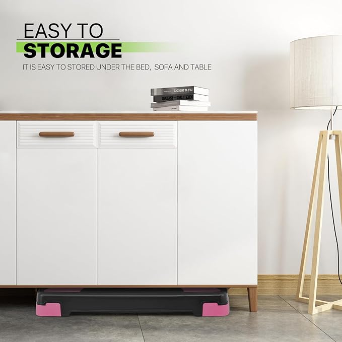 - Easy to Carry & Storage: The compact and lightweight design makes it easy to carry, so you can not only do your daily workout at home, but also bring it to the office or gym. The risers can be stored under the platform, reducing the footprint and making it easy to store in the corner of the room.