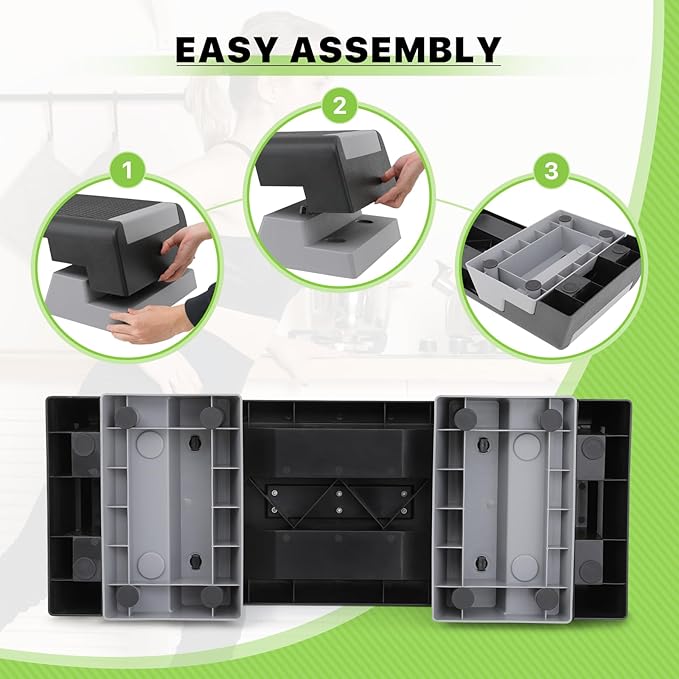 - Easy to Carry & Storage: The compact and lightweight design makes it easy to carry, so you can not only do your daily workout at home, but also bring it to the office or gym. The risers can be stored under the platform, reducing the footprint and making it easy to store in the corner of the room.