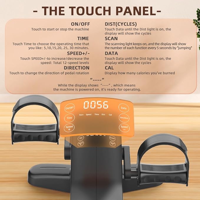 - 【LCD DISPLAY & ADJUSTABLE RESISTANCE】 HOMGIM Under Desk Bike Pedal Exerciser with Multifunction LCD monitor display, the easy reading LCD screen displays time, distance, count(number of turns), total count, and calories burned, press the POWER button to switch data or reset the data to zero. It's can be used to strengthen arms and legs, increase circulation, improve stamina and relieve tension for greater focus and concentration