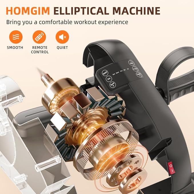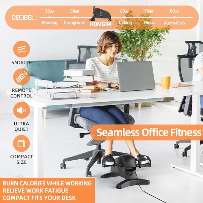 - 【SMALL & QUIET UNDER DESK ELLIPTICAL MACHINE】HOMGIM electric mini bike is used for arms and legs cycling exercises at the office or at home to increase circulation and relieve tension, the pedal motion is smooth and quiet, you can do exercise while you are on phone, watching tv, working, or playing video games.