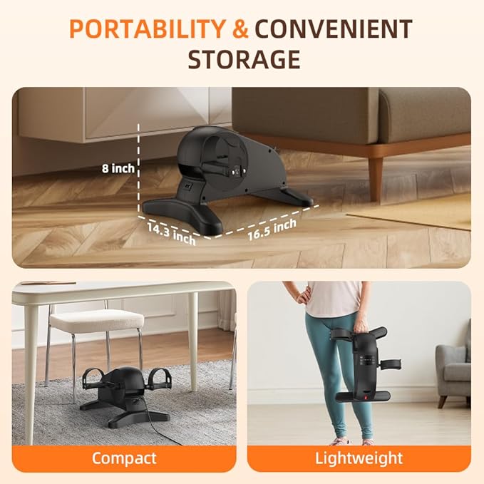 - 【MULTIPLE OPTIONS】This under desk bike pedal exerciser is a practical option to exercise your legs and arms muscles easily. It offers multiple options so that it can suit your needs: motorized or manual assisted workout, forward and backward. It features ergonomic pedals, which also allow its use for hands.