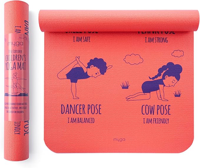 - MYGA KIDS SILK PRINT YOGA MAT: Introduce your kids to yoga and mindfulness with Mygas multifunctional mat, the perfect base for childrens yoga, exercise, fitness, mindfulness and floor based activities.