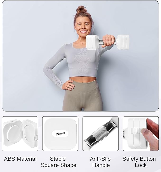 - The weights dumbbells set are square and not round. The square shape keeps them from rolling around on the floor or shelf. The handle boasts anti-slip strips to provide better gripping.