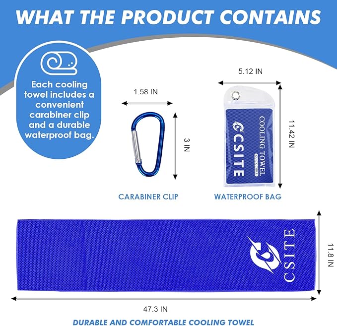 - DESIGN FEATURES : Measuring "47x12", the cooling towel offers ample coverage; Expanding the size brings better cooling effects; Crafted from high-quality materials, these towels are durable and longevity, providing a dependable, cost-effective cooling solution for the long term; Please feel free to contact us for any issues