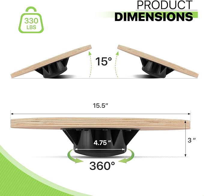 - Durable, High-Quality Wooden Balance Board: Built from premium plywood and PP materials, this stability trainer supports up to 330 lbs, making it suitable for athletes, seniors, and beginners looking to enhance their balance and core strength.