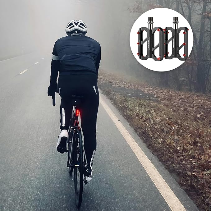 - Sealed Self-Lubricating Bearings: Equipped with dual DU self-lubricating bearings for excellent lubrication, water and dust resistance, and easy maintenance. High-Performance Road Bike Pedals, CNC Machined Aluminum Alloy Body with Chromium-Molybdenum Steel Spindle, Ideal for Road Cycling