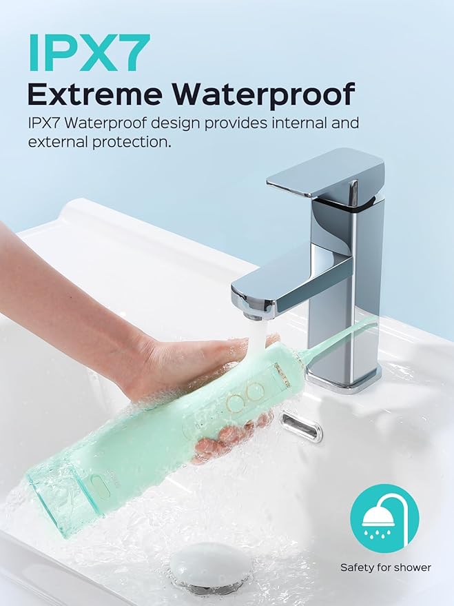 - Ipx7 Waterproof & Long-Lasting Durability: Our portable water flossers for teeth feature an IPX7 waterproof design, making them convenient to use even in the shower. The upgraded motor delivers a reliable and steady water flow, helping to improve the removal of surface stains and support oral care. With a lifespan twice as long as other products, it effortlessly handles daily use and routine cleaning, ensuring a more comfortable user experience