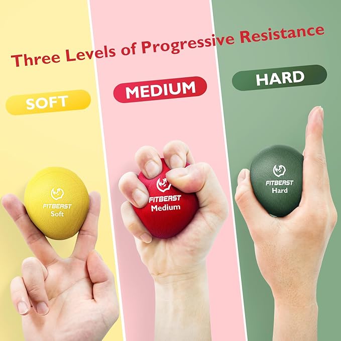 - ๐ฒ-๐ฃ๐ถ๐ฒ๐ฐ๐ฒ ๐ฆ๐๐ฟ๐ฒ๐๐ ๐๐ฎ๐น๐น ๐ฆ๐ฒ๐ ๐๐ถ๐๐ต ๐ฏ ๐ฅ๐ฒ๐๐ถ๐๐๐ฎ๐ป๐ฐ๐ฒ ๐๐ฒ๐๐ฒ๐น๐๏ผOur 6-piece set includes 3 egg-shaped and 3 round stress balls, each available in Soft, Medium, and Hard resistance levels. These are perfect for hand grip strengthening, forearm conditioning, and stress relief exercises. Ideal for physical therapy, rehabilitation, and fitness enthusiasts.