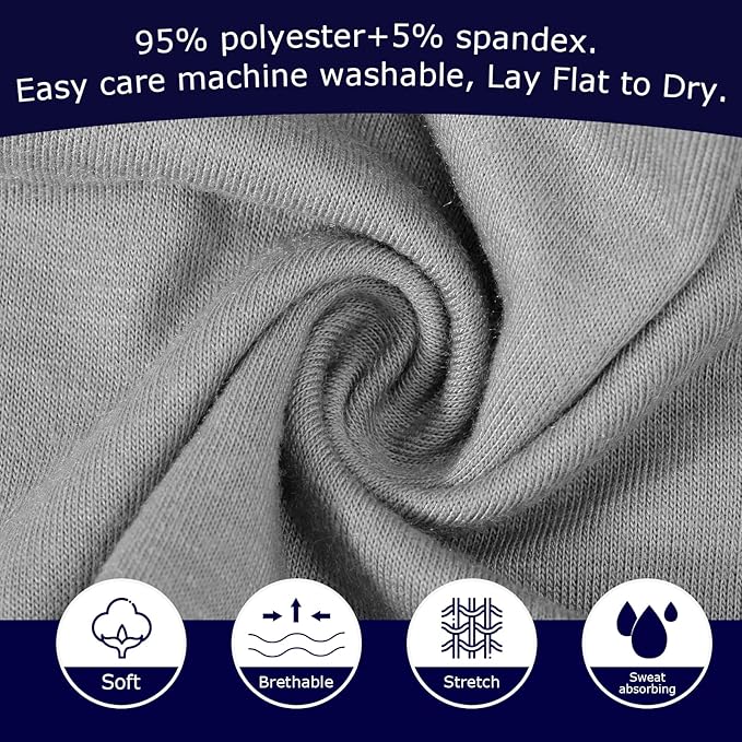- 【Premium Material】95% polyester, 5% spandex. Easy care machine washable, Lay Flat to Dry. Provide Excellent Performance for Absorbency, Wicking, Durability and Abrasion Resistance.