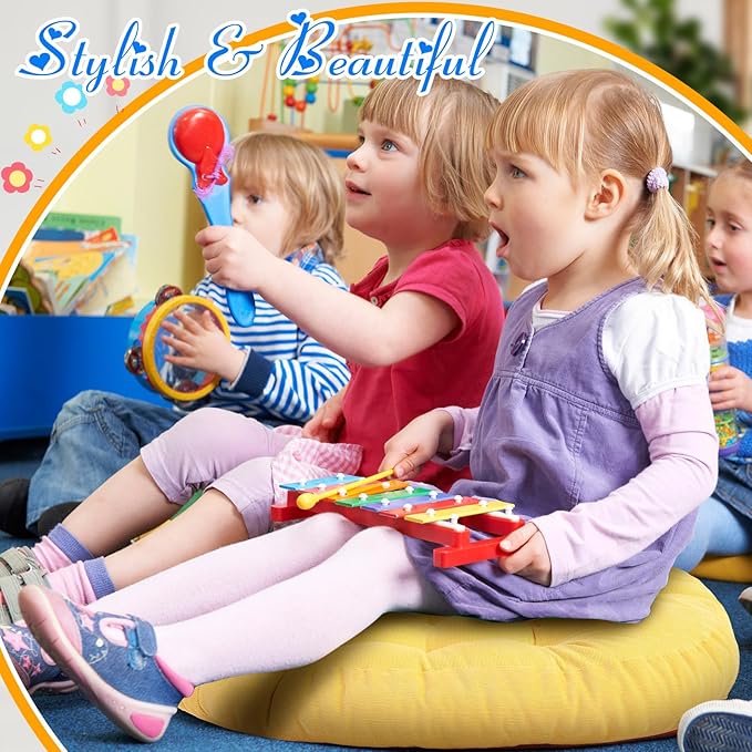 Jerify Floor Pillow Cushions 22 x 22 Inch Round Square Large Meditation Floor Pillow for Classroom Adult Meditation Picnic Party Cushion for Seating Gift Christmas(Round,Colorful,4 Pcs)